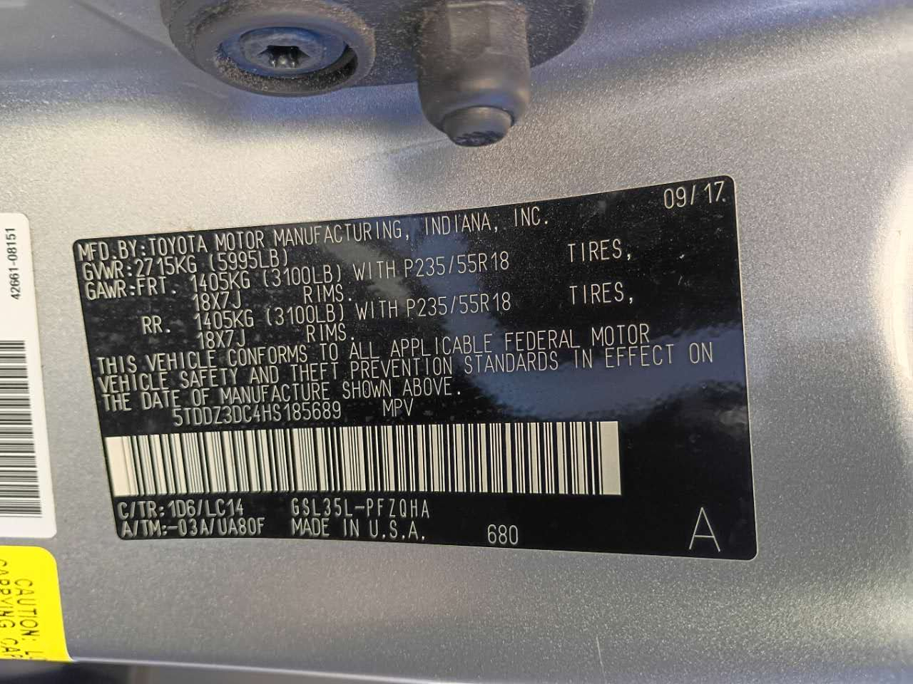 Vehicle Inquiry for 2017 Toyota Sienna XLE 7-Passenger AWD